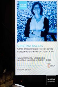 “Cómo encontrar el proyecto de tu vida: el poder transformador de la educación” es el título de la conferencia que Cristina Balbás (Burgos, 1987) ofreció el viernes 7 de febrero, en el espacio Circus de Oviedo, organizada por la Fundación 16 de 24.